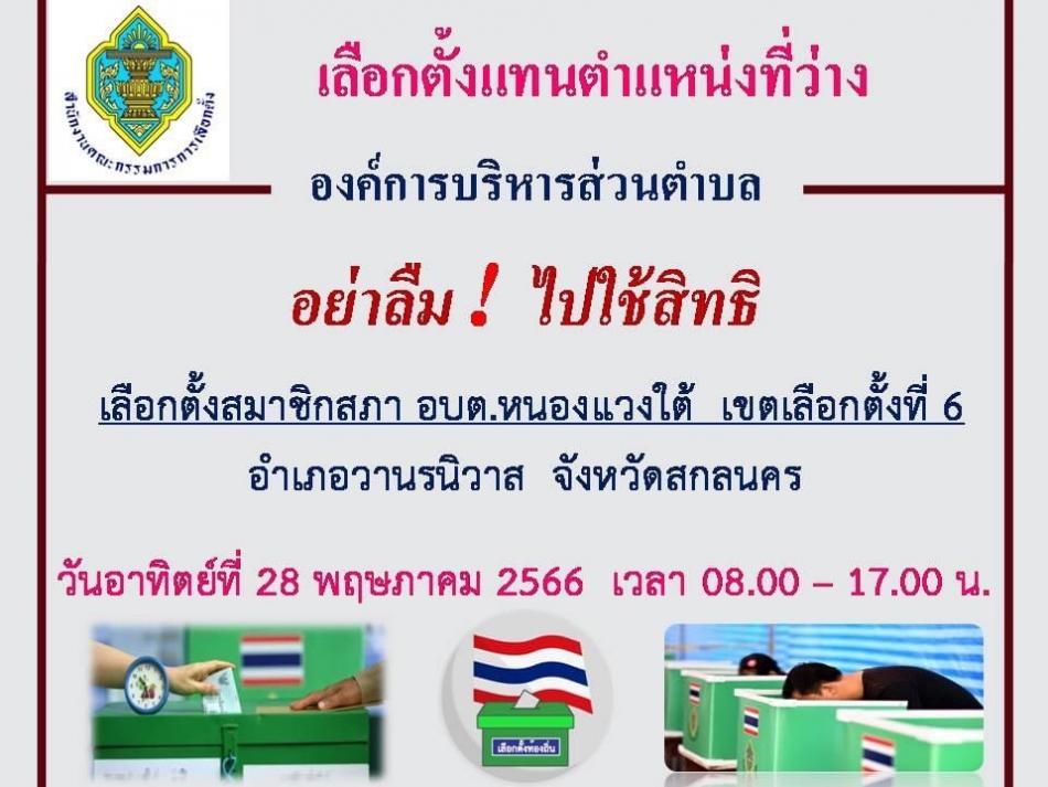 การเลือกตั้งสมาชิกสภาองค์การบริหารส่วนตำบลหนองแวงใต้ เขตเลือกตั้งที่ 6 (กรณีแทนตำแหน่งที่ว่าง) [29 พฤษภาคม 2566]