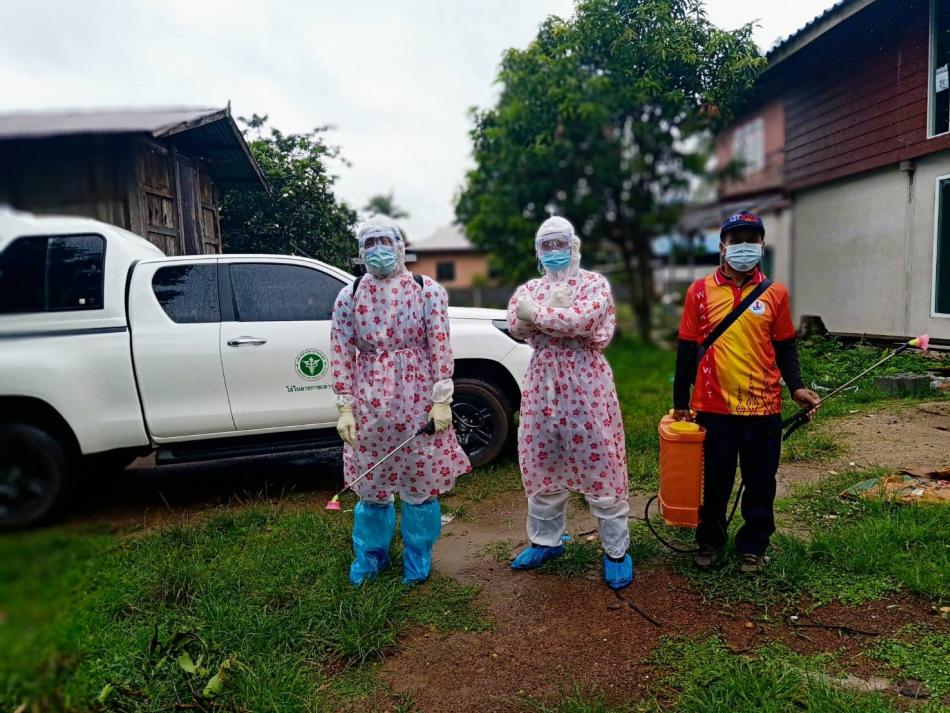 อบต.หนองแวงใต้ ออกฉีดพ่นยาฆ่าเชื้อสถานที่พักผู้ป่วยโควิด -19 [27 กรกฎาคม 2564]