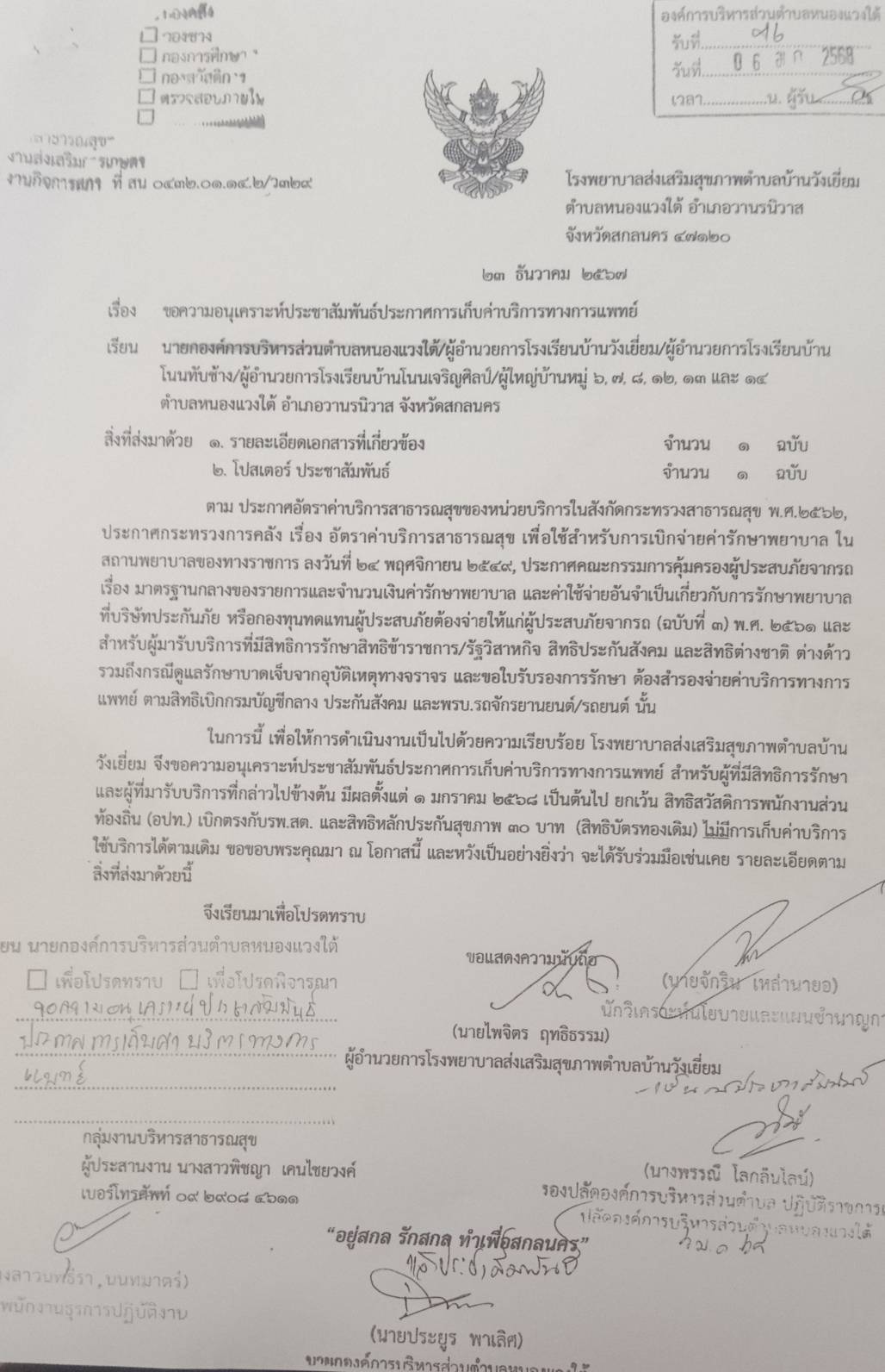 ขอความอนุเคราะห์ประชาสัมพันธ์ประกาศการเก็บค่าบริการทางการแพทย์ ของ รพ.สต